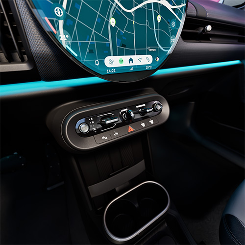 MINI Navigationssystem, Bluetooth Freisprecheinrichtung, MINI Connected, Driving Assistant, Frontkollisionswarnung mit Bremseingriff, Parking Assistant mit Active Park Distance Control und Rückfahrkamera, Rückfahrassistent, MINI Interaction, Unit – rundes Zentral-Display mit 24 cm Durchmesser und OLED-Technologie u.v.m.